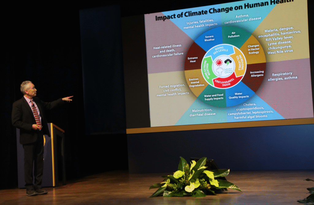 Gli interventi di venerdì, invece, hanno lasciato spazio alla riflessione su questioni di strettissima attualità come il cambiamento climatico e l’intelligenza artificiale, indagandone il rapporto con l’invecchiamento. Tanti gli spunti proposti, che rispetto alla questione ambientale si possono riassumere in un’affermazione del prof. Jan Semenza, dell’università svedese di Umeå (in foto, sotto): “Non possiamo vedere persone morire tutti gli anni, se il calore è contrastabile”. In questo senso, la battaglia al riscaldamento globale assume un valore etico non solo in rapporto alle nuove generazioni, ma anche a quelle più avanzate, per le quali gli effetti del calore eccessivo possono essere particolarmente dannosi.